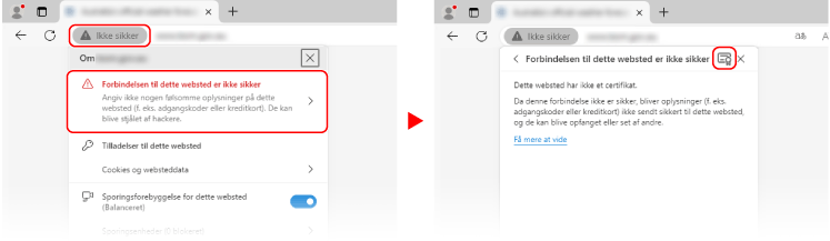 I URL-indtastningsfeltet skal du klikke på [Ikke sikker]