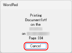 I dette tilfælde skal du annullere udskrivning ved hjælp af maskinens betjeningspanel eller Remote UI (Brugerinterface til fjernbetjening).