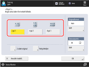 Vælg det antal sider, der skal kombineres på den ene side af papiret. For eksempel, når du vælger [4 på 1], kombineres fire sider på den ene side af papiret.