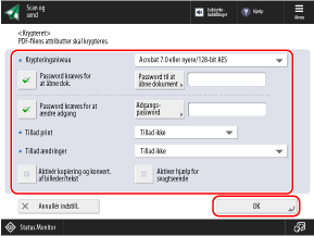 * Yderligere funktioner ud over [Formatér til PDF/A] kan indstilles kombineret med [Kryptér].