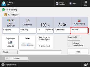 Tryk på knappen til indstilling af filformat på scanningsskærmen.