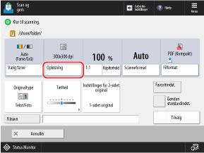 Forøg opløsningen, når du vil scanne originaler finere, og reducer opløsningen for at sænke filstørrelsen.
