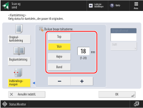 Når du indtaster de individuelle slettebredder for top, bund, venstre og højre, skal du trykke på [Justér uafhængigt], og indtaste slettebredderne.