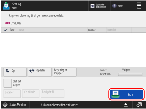 På kontrolpanelet skal du trykke på [Scan og gem] på skærmbilledet [Hjem].