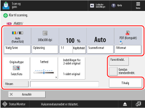 På scanningsskærmen skal du trykke på [Tilvalg]