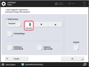 Disse tegnformatindstillinger anvendes kun på prøveprintet til justering af kontrasten. Indstillingerne anvendes ikke på det vandmærke, der er integreret, når dokumenter rent faktisk udskrives eller kopieres.