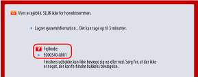 Afhængigt af fejlen vises der muligvis en meddelelse, der beder dig om ikke at slukke for strømmen til maskinen, da maskinen gemmer systemoplysningerne, efter fejlen opstod. I dette tilfælde må du ikke slukke for maskinen, før dataene er gemt.