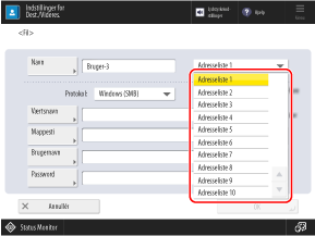 Ved at registrere destinationer (oplysninger om delt mappe) i adressebogen på forhånd, når du gemmer scannede data i en specificeret delt mappe gentagne gange, kan du spare besværet med at indtaste oplysninger om destinationer, hver gang du sender data.