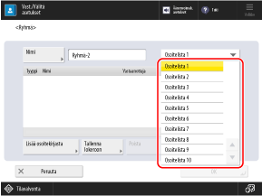 Jos rekisteröit ryhmän Osoitekirja-näytöstä, tätä vaihetta ei vaadita. Siirry vaiheeseen
