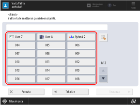 Voit myös rekisteröidä vastaanottajia pikavalintapainikkeille skannaus- (Skannaa ja lähetä) tai faksinäytöstä.