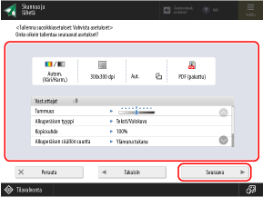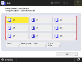 Kun käytät skannausta, kopiointia tai muita toimintoja, hae käyttötarkoituksen mukainen asetus rekisteröidyistä Suosikkiasetuksista.