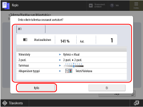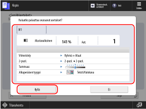 Kopiointiasetukset on määritetty, joten voit kopioida painamalla [