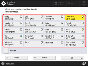 Jos lisäät aina samaa paperia monitoimitasolle, voit valita paperille vakiokoon ja -tyypin. Tämä estää paperiasetusten näytön näkymisen ja helpottaa asetusten määrittämistä.