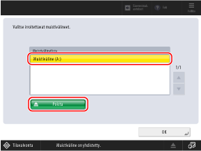 Käytä käyttöpaneelia USB-tallennuslaitteen poistamiseen laitteesta. Et voi poistaa USB-tallennuslaitetta tietokoneesta Remote UI (Etäkäyttöliittymä) -sovelluksen avulla.