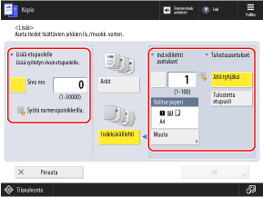 Voit lisätä indeksivälilehtiä kopioihin.