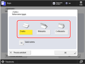 Valitse, aloitetaanko kopiointi taitetun paperin sisä- vai ulkopuolelta.