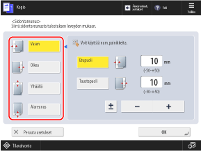 Valitse se painamalla [Etupuoli] tai [Taustapuoli] ja anna sitten arvo.