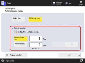 Syötä ensimmäisen ja viimeisen sivun sivunumerot valmiin kopion sivujen lukumäärän perusteella.
