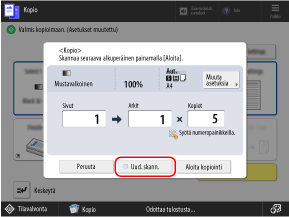 Ennen kuin painat [Aloita kopiointi], syötä kopioiden lukumäärä uudelleen numeropainikkeita käyttäen.