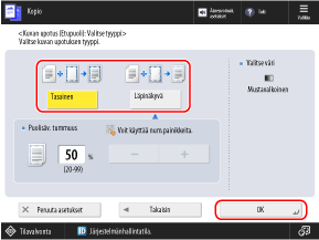 * Jos haluat määrittää taustapuolen käyttämällä samoja asetuksia kuin etupuolella, aseta ensin etupuoli ja valitse sitten [Sama kuin etupuolella].