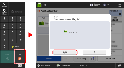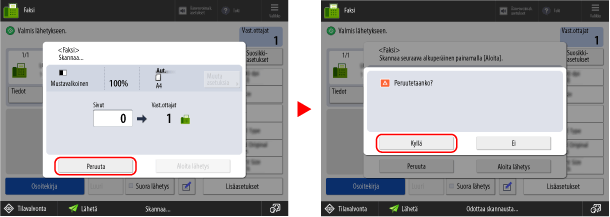 Kun lähetät faksin laitteella, voit peruuttaa faksin lähetyksen noudattamalla näytön ohjeita.