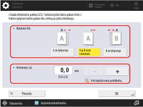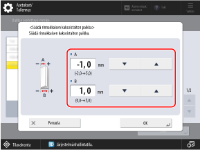 Säädä paperin taittokohtaa käyttöpaneelista. Säätöä ei voi tehdä käyttämällä Remote UI (Etäkäyttöliittymä) -sovellusta tietokoneella.