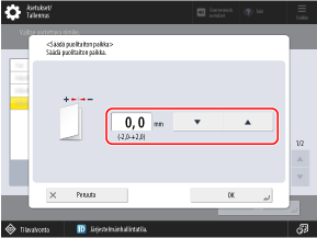 Asettamalla positiivisen (+) arvon voit siirtää paikkaa paperin vasemmalle puolelle, kun se on levitetty auki, tai asettamalla negatiivisen (-) arvon voit siirtää paikkaa oikealle.