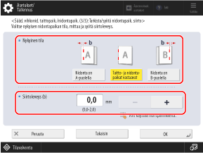 Säädä vihkonidontakohtaa ja nidontakohtaa käyttöpaneelilla. Säätöä ei voi tehdä käyttämällä Remote UI (Etäkäyttöliittymä) -sovellusta tietokoneella.