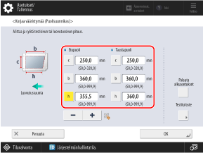 Syötä mitatut arvot kohtaan [b] ja [h], syötä alla oleva arvo kohtaan [c] ja paina [OK].