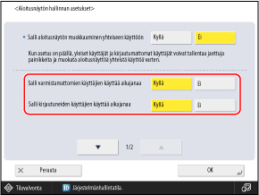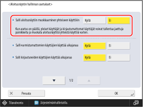 Aseta arvoksi [Kyllä], jotta muut kuin järjestelmänvalvojat voivat lisätä jaettuja painikkeita ja tehdä muutoksia [Muokkaa yht. käyttöön]-asetuksiin.