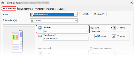 Valitse asiakirjan paperikoko kohdassa [Sivukoko] [Perusasetukset]-välilehdellä.