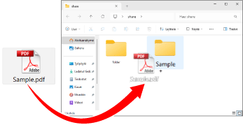 Kun hot folder -kansio lisätään laitteen kohteeseen Lisätila, voit tulostaa tietoja käyttämällä etukäteen määritettyjä tulostusasetuksia kopioimalla PDF-, JPEG- tai TIFF-tiedoston kansioon.