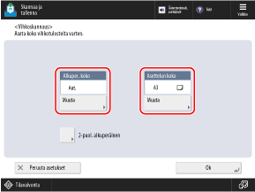 Tietojen tulostuskoko (skannatun tiedon paperikoko) asetetaan automaattisesti asetuksen [Asettelun koko] mukaisesti.