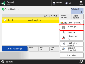 * Et voi määrittää tarkkuutta, kun skannatut tiedot tallennetaan postilaatikkoon. (Resoluution kiinteä arvo on [600x600 dpi].)