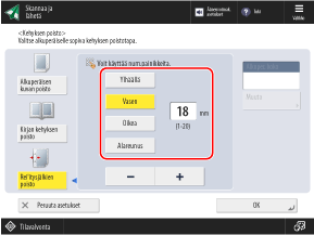 Jos haluat syöttää poistoleveydet erikseen ylös, alas, vasemmalle ja oikealle, paina [Riippumaton säätö] ja syötä poistoleveydet.