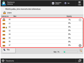 Tallennuskohde näkyy laitteen käyttöpaneelissa, joten voit vahvistaa tallennuskohteen ja tallentaa skannatut tiedot.