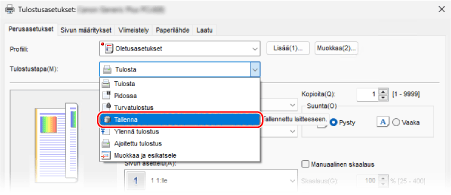 Valitse kohdassa [Tulostustapa] vaihtoehto [Tallenna].