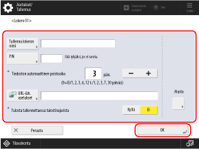 [Tiedoston automaattinen poistoaika] ja [Tulosta tallennettaessa tulostinajurista] voidaan määrittää kaikkiin postilaatikoihin samanaikaisesti.