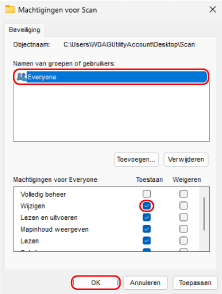 Selecteer [Iedereen] voor [Namen van groepen of gebruikers].