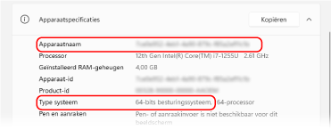 In [Apparaatspecificaties] controleert u de computernaam en de versie van het besturingssysteem.