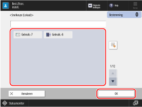 Druk op [Opslaan in postbus], selecteer het postvak dat u in de groep wilt registreren en druk op [OK].