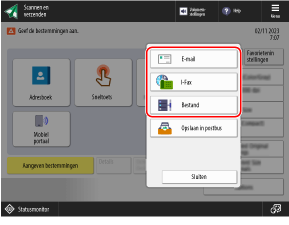 Afhankelijk van de instellingen van de machine kunt u mogelijk ook faxbestemmingen opgeven op het scanscherm.