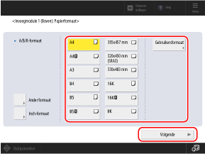 Selecteer hetzelfde papierformaat dat is geplaatst in de Document Insertion Unit-R.