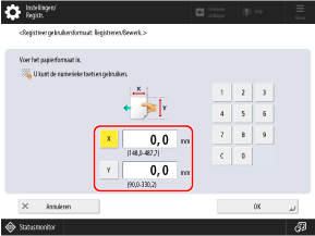 U kunt formaten registreren wanneer u vaak papier van een bepaald niet-standaardformaat gebruikt. U kunt het formaat oproepen op het scherm voor het invoeren van het formaat, zodat u niet telkens het formaat hoeft in te voeren.