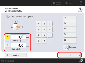 Wanneer veelgebruikte afwijkende formaten geregistreerd zijn, kunt u deze oproepen door op te drukken [S1] tot [S5].
