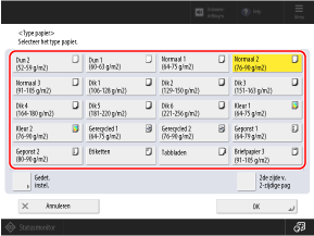 Druk op [Gedet. instel.] en selecteer het papiertype in de weergegeven lijst.