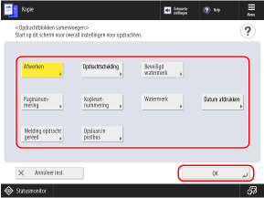 Configureer de kopieerinstellingen die op alle originelen moeten worden toegepast en druk op [OK].