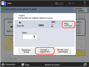 Druk op [Scaninstel. v. volgende blok] en configureer de kopieerinstellingen voor het tweede origineel.