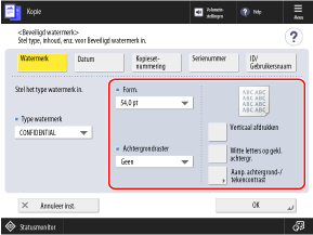 U kunt onzichtbare achtergrondtekst insluiten (Veilig watermerk) zoals "TOP SECRET" of "CONFIDENTIAL" bij het kopiëren.
