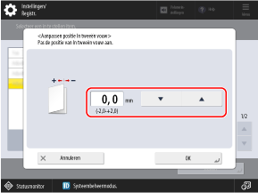 Stel een positieve (+) waarde in om de positie naar links op het papier te verschuiven wanneer het papier opengevouwen is, of stel een negatieve (-) waarde in om de positie naar rechts te verschuiven.